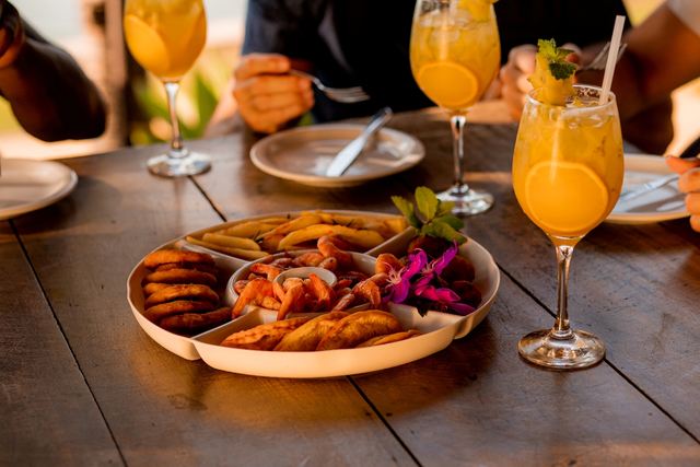 No Manzuá, a sugestão é o drinque por R$32,00 com Ketel One Botanical Peach & Orange Blossom, licor de morango, suco de limão, xarope Toranja e finalizado com Red Bull melancia e por apenas R$51,00, Trio Manzuá (acarajé, bolinho de aipim com camarão e isca de peixe à milanesa.