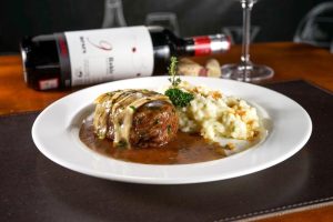 - Medalhão de filé mignon grelhado com queijo brie, ao molho madeira e ervas frescas, acompanhado de risoto de parmesão com rapadura.