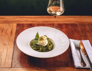 Para os clientes vegetarianos ou que preferem evitar proteínas animais, a casa sugere o Linguine al Pesto, preparado com molho pesto, burrata e limão. A tradicional Torta Caprese fecha a refeição com um doce toque italiano.