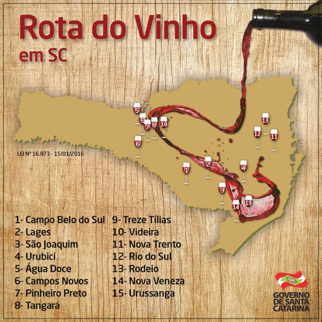 Em janeiro deste ano foi criada a Rota Catarinense da Uva e do Vinho (lei n.16.873 – 15.01.16) para a felicidade de todos os apreciadores da enocultura. A novidade tem como um dos objetivos impulsionar a produção artesanal e industrial das vinícolas e geração de empregos e fortalecimento da agricultura familiar na região. Claro que também irá estimular a formação de técnicos, como enólogos e sommeliers, além de incrementar o turismo no local.