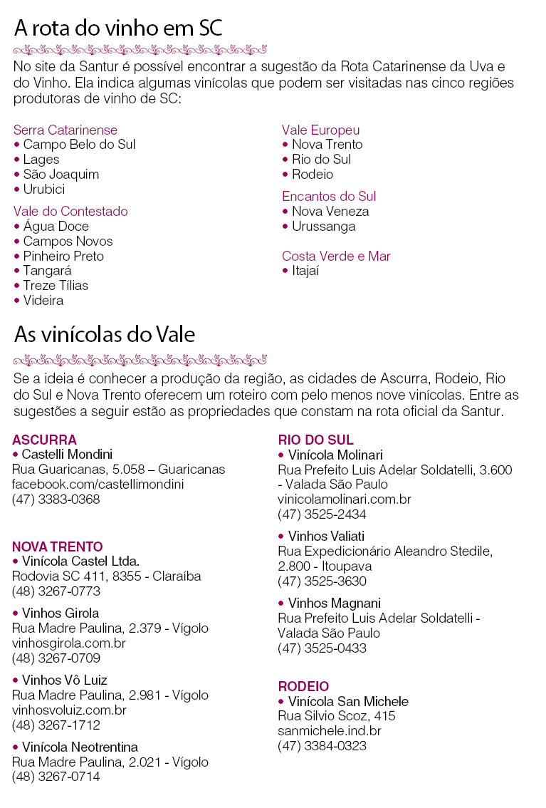 No site da Santur você pode conhecer um mais dos detalhes do roteiro que inclui 15 cidades, entre elas, Lages, São Joaquim, Rio do Sul, Rodeio e Nova Trento. Todas elas possuem diversas vinícolas que são indicadas para serem visitadas. Mas aqui vale uma observação minha – É bom saber que nem todos os produtores ainda estão bem preparados para receberem os turistas, pois como a iniciativa é nova ainda não há uma estrutura adequada para receber as pessoas adequadamente, como já existe em rotas de vinhos mais famosas. No entanto, o passeio não deixa de ser interessante, afinal, você conhecerá vinícolas com características únicas.