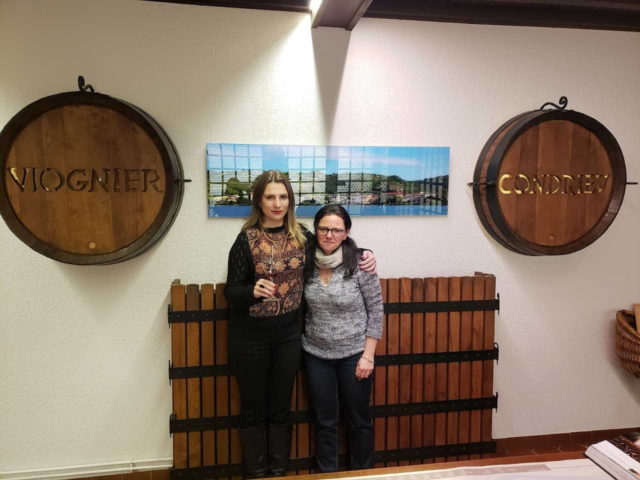 A próxima parada foi na Jean-Luc Colombo! Essa vinícola foi escolhida porque a família Colombo foram os pioneiros em promover os vinhos de Cornas e atualmente Anne é a presidente desta denominação. Além disso, eles produzem bons vinhos de outras apelações e eu estava curiosa pelo seus Hermitage.