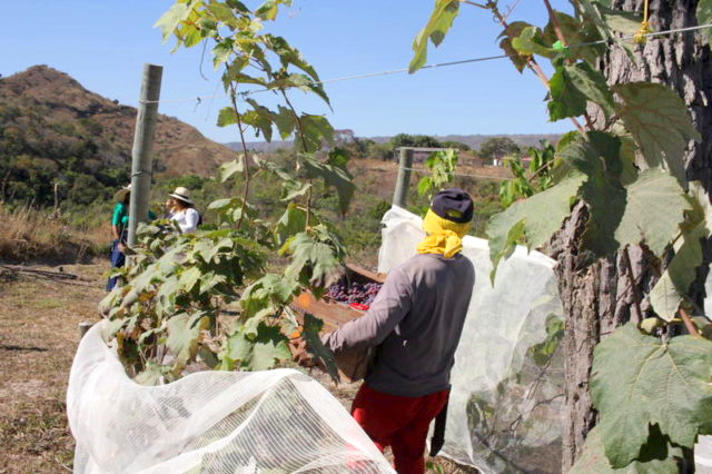 A primeira, chamada poda de formação, é feita entre agosto e setembro, para o desenvolvimento e descarte dos ramos produtivos. Já uma segunda, esta sim de produção, acontece em janeiro com a finalidade de frutificação. Então, nos meses seguintes acontecem os passos naturais de florescimento e formação dos cachos para, enfim, proceder-se à colheita de inverno.