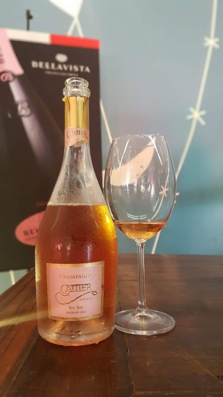 O outro espumante que eu adorei foi o Cattier Antique Premier Cru Brut Rosé! Olha que cor linda! Perlage fino e persistente! Aromas intensos de frutas vermelhas e panificação. Acidez média alta e alta persistência. Muito delicado! Elaborado com Chardonnay 10,0%, Pinot Noir 50,0% e Pinot Meunier 40,0%. Preço: R$410,00.
