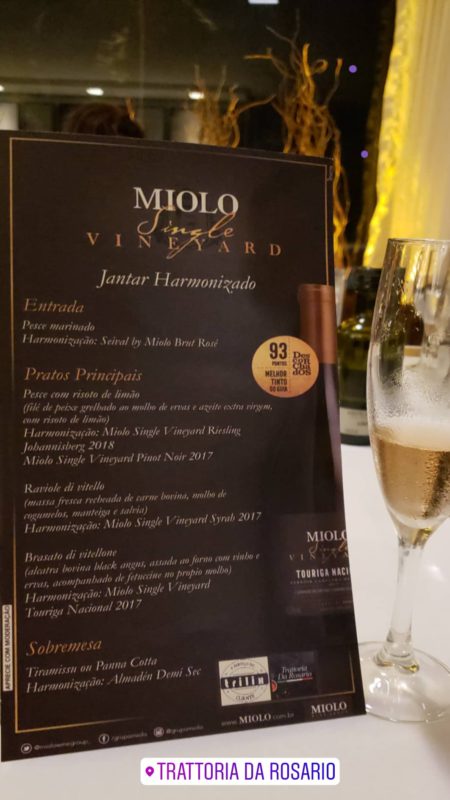 Em setembro do ano passado, tive a oportunidade de conhecer toda a linha Miolo Single Vineyard (relembre aqui) em evento de lançamento ocorrido no Dom Francisco Restaurante – ocasião em que fiquei impressionada com a qualidade desses vinhos produzidos em solos brasileiros. Recentemente, pude degustar a linha completa novamente. Dessa vez, em jantar harmonizado na Trattoria da Rosário e com a apresentação super especial do Professor Sérgio Pires – a ocasião foi perfeita e serviu para confirmar as boas impressões da primeira degustação.