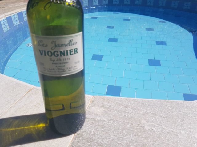 O vinho foi apreciado num dia de sol e à beira da piscina, o que fez que ficasse mais saboro ainda. Apesar de a Viognier ser conhecida por produzir vinhos de baixa acidez, o Les Jamelle estava bem equilibrado, refrescante e leve e apresentou uma persistência média. No nariz mostrou notas florais, de jasmin, por exemplo, e toques de frutas tropicais que também se fizeram presentes na boca, além de damasco.
