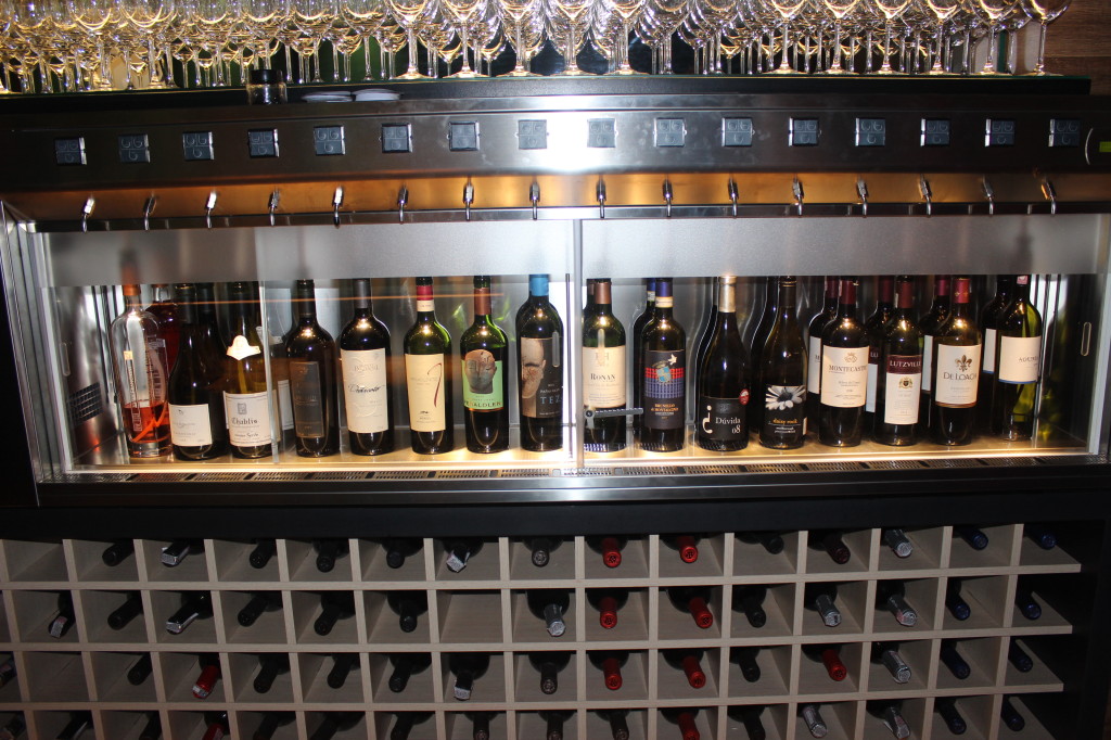 Testando a By the Glass – No pequeno, mas extremamente acolhedor Wine Bar da Baco (e a convite dos proprietários do local), percebi que tudo funciona de modo relativamente simples num estilo self-service, com o cliente fazendo tudo sozinho. Após solicitar ao funcionário da casa um cartão com créditos (mínimo de R$5,00), o passo seguinte é selecionar na máquina uma das 16 opções de vinhos das mais variadas marcas e nacionalidades disponíveis. Existem doses de 30, 75 ou 150 mililitros para serem escolhidas. Os preços variam de R$2,50 a R$120 dependendo do vinho e da quantidade desejada.