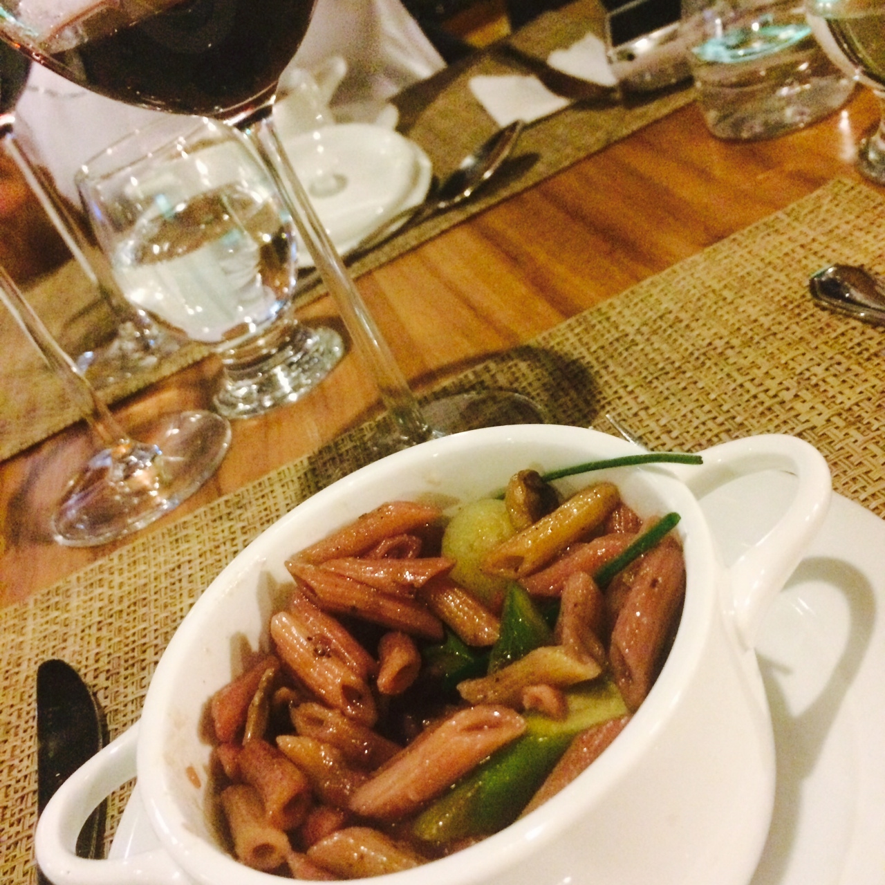 Harmonizando – De entrada apreciei umas deliciosas bruschetas de cogumelos e bruschetas de tomate cereja, parmesão e manjericão harmonizadas com uma taça do fresco albarino Pionero Maccerato 2010. Em seguida, experimentei as quiches da casa – a de alho poró e a de queijo de cabra e maçã verde servidos com saladinhas – todos as duas estavam deliciosas. Para acompanhá-los, uma taça do Garnacha Rosé de Navarra. que harmonizou muito bem. E para encerrar com chave de ouro a noite, um filé em cubos ao molho merlot, cogumelos com aspargos e mini penne (R$29) com um delicioso Douro Fronteira. Vale ressaltar que a equipe que atende os clientes é treinada para indicar os melhores vinhos para acompanhar os pratos do cardápio, caso seja de interesse do cliente.
