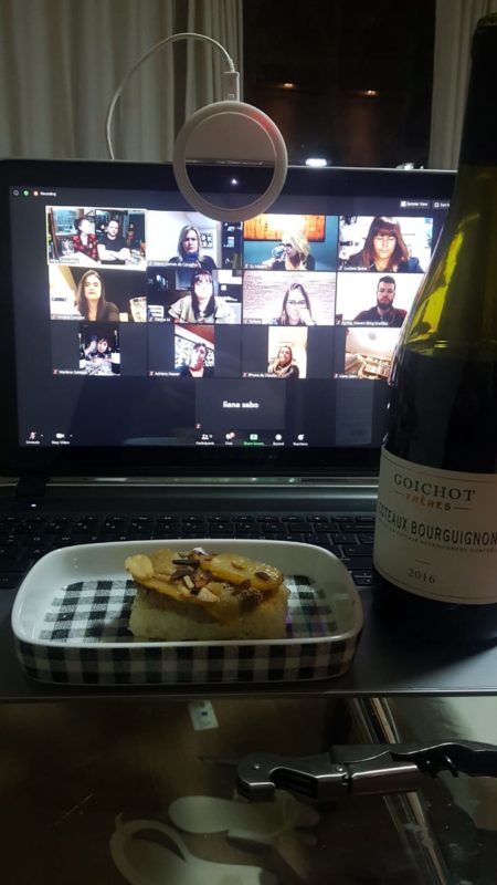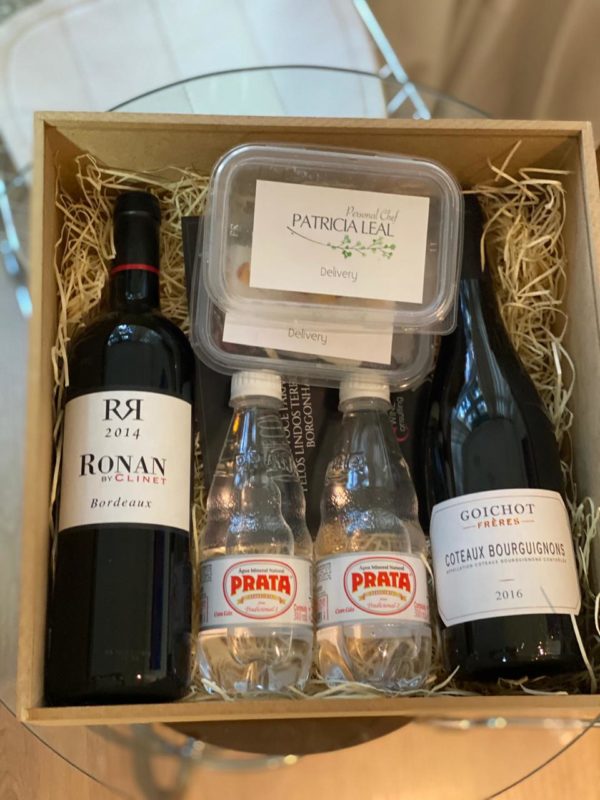 Um kit composto por dois vinhos, dois pratos para harmonização elaborados pela Chef Patrícial Leal e águas gaseificadas da Apollen Distribuição foi enviado para casa dos participantes momentos antes da degustação, cujo tema foi Borgonha x Bordeaux.