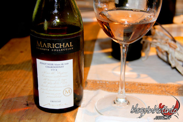 Dois cortes me chamaram atenção durante visita. O primeiro deles foi o Pinot Noir com Chardonnay, chamado pela vinícola “Marichal Reserve Collection Pinot Noir Blanc de Noir” – Esse é o corte de alguns dos grandes espumantes do mundo, mas ficou ótimo sem a segunda fermentação. A cor dele também é interessante, lembrando um rosé da Provence, embora, tecnicamente, seja de fato um vinho branco devido ao método de elaboração. Feito com 65% Pinot Noir e 35% Chardonnay o vinho é fresco, elegante e com boa estrutura. Em função do estágio em barricas, na boca se apresenta untuoso. Frutas vermelhas bem fresquinhas e frutas cítricas são evidentes no nariz.