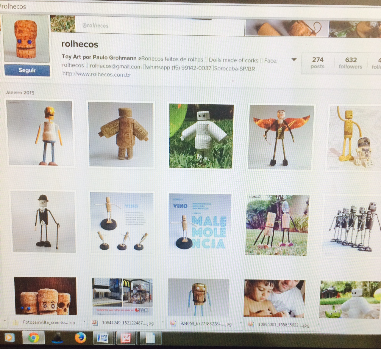 Blog – Os Rolhecos já são conhecidos no exterior? Como foram aceitos? Você já conseguiu vendê-los para o exterior? Paulo GrohmannNosso perfil no Instagram é bastante internacional, praticamente metade dos seguidores são estrangeiros. Atualmente estamos negociando envios para Portugal, Inglaterra e França. Blog – E as rolhas para fabricar os Rolhecos, de onde vem? Você também aceita doação de pessoas físicas? Como essas pessoas deverão proceder? Paulo Grohmann Por questões de transporte, temos captado rolhas apenas na região de Sorocaba e São Paulo. Para doações de outras localidades, é melhor combinar antes pelo fone (15) 3327-1975 ou email: rolhecos@gmail.com.