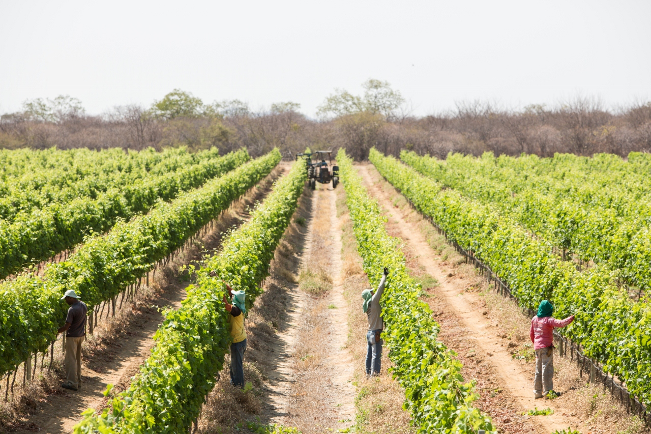 João Santos – Talvez a melhor forma de explicar seja a seguinte: se você plantar um lote de milho em janeiro, outro em fevereiro, outro em março, você vai colher o milho todo na mesma época? Claro que não. Vai ter de respeitar o ciclo da planta. Na verdade, você vai ter milho durante três meses, pois quando acabar a colheita do milho de janeiro, vai começar a colher o que plantou em fevereiro e, depois, o que semeou em março e assim por diante. Com a videira acontece o mesmo. Como a poda acontece todos os meses, a colheita também acontece todos os meses. Quanto às plantas, elas fazem ciclos normais. O que a empresa faz no Vale do São Francisco é diluir o fenômeno de safra e entre safra durante o ano – enquanto algumas videiras hibernam em uma área, independentemente de ser inverno ou verão, em outros locais outras brotam ou são podadas. Dessa forma, é possível trabalhar o ano inteiro com funcionários fixos que vão se revezando nessas respectivas áreas para fazerem seus trabalhos especializados, seja de poda, trabalhos em verde ou colheita. Isso permite produzir vinhos distintos dos climas temperados aos quais o mercado está habituado.