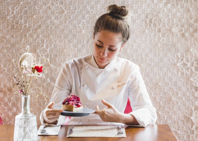 Ela não se lembra, mas quando completou 40 dias, os pais a levaram de Jaú, no interior paulista, para Maceió, a capital alagoana. A memória de crescer comendo cuscuz e macaxeira, porém, é muito presente, assim como a de ter passado natais, réveillons e outros feriados dentro de restaurante, pizzaria e cachaçaria desde que se conhece como gente. A cima de tudo foram os negócios familiares que inspiraram Giovanna a cursar Gastronomia na Anhembi Morumbi e a partir para a França, em 2012, onde estudou no célebre Instituto Paul Bocuse, integrou a equipe do triplamente estrelado Le Taillevent, aperfeiçoou-se em confeitaria no Instituto Alain Ducasse e estagiou no Maison Pic de Valence.