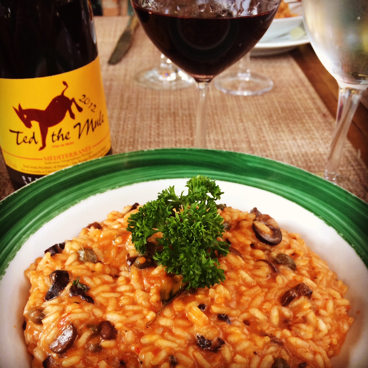 Minha experiência – O único problema para quem vai participar do Festival é escolher apenas uma dentre as oito opções de risotos disponíveis…Haja dúvida! A minha dica é aproveitar que o evento vai até o fim do mês para saborear diversas opções em dias alternados. Eu comecei pelo risoto putanesca, com ingredientes tipicamente mediterrâneos: tomate italiano, azeite extra-virgem, aliche, azeitonas pretas, alcaparras e leve toque de pimenta calabresa. Para harmonizar, o Flávio Leste, que é um dos donos do restaurante, me indicou o vinho Ted The Mule