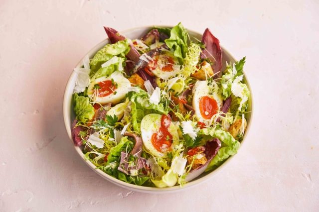 Mix (a partir R$ 55): alface americana, rúcula, molho de mostarda, cebola, presunto de parma, lascas de parmesão, muçarela de búfala, abobrinha assada, berinjela, tomate caqui, azeitonas pretas e verdes, tomate seco, manjericão, alho crocante, aceto balsâmico e azeite. Acompanha crostini (massa fina de pizza temperada com azeite, sal grosso e orégano).