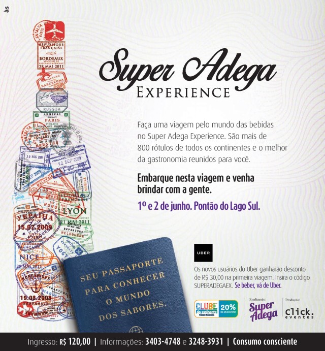 O Super Adega Experience é uma realização da empresa Super Adega e a produção é da Click Eventos. Os ingressos poderão ser adquiridos através do site da Super Adega, na própria loja ou no local do evento