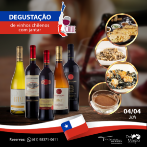 No dia 04 de abril, às 20h, o Ticiana Werner Restaurante & Wine Bar realizará uma degustação de vinhos chilenos acompanhada de jantar completo por R$220 por pessoa. O evento conta com o apoio da importadora Del Maipo e terá a presença de Cristobal Toral e Nicolás Montero, da Viña Casa Donoso. Serão cinco vinhos harmonizando um menu especialmente preparado pela Chef Ticiana Werner. As vagas são limitadas e as reservas podem ser feitas pelo WhatsApp: (61) 98371-0611.