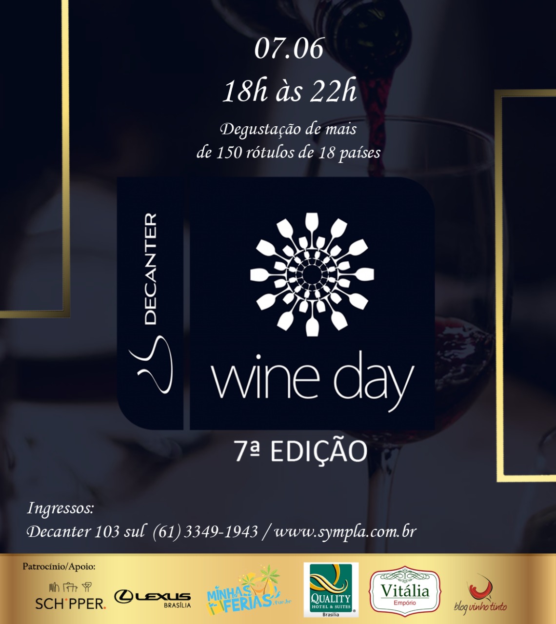 Vem aí a 4ª Edição do Wine Day Brasília – evento imperdível promovido anualmente pela Enoteca Decanter e que, este ano, vai ser realizado no