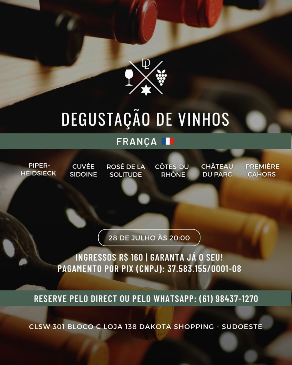Nesta sexta-feira dia 28 de julho, a partir das 20h, o Empório Don Luiz realizará sua tradicional degustação de vinhos, com a França sendo o