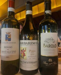 Outro vinho delicioso da noite foi o Castelli Martinozzi Rosso di Montalcino 2021, um Sangiovese vivo, elegante e sem arestas. A cor dele é um vermelho rubi intenso. No nariz e na boca, um resumo: Melhor do que muito Brunello.que tem por aí. De verdade! R$210,00.