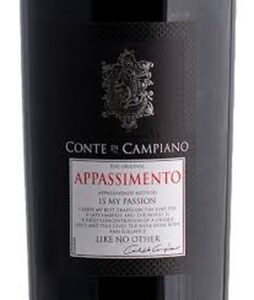 O Conte di Campiano Apassimento é produzido na Puglia. Sul da Itália. Tem 14% de álcool e preço médio em janeiro de 2024 – R$170,00.