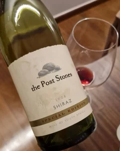 1. The Post Stones Shiraz 2008 Special Edition – um vinho produzido na África do Sul com a uva Shiraz. O vinho já estava com 15 anos, mas estava surpreendemente agradável. A cor era rubi mas mostrava traços atijolados. No nariz mostrou um misto de ameixas, amoras, chocolate e um pouco de amêndoas. Na boca tinha taninos macios, corpo médio, acidez média menos e um final envolvente. O que mais gostei foi da elegância. Procurei na Internet pra ver o preço, mas não achei. Parece que não fabricam mais…não sei! E pelas informações que obtive não parece ter sido caro, de toda forma, pela idade surpreendeu e agradou muito.