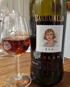 4. Barbadillo Eva Cream Sherry – esse é um jerez que mistura Oloroso e Palomino e Pedro Ximenez (PX). É um vinho doce, mas por conta do blend não é extremo como o PX. No nariz mostra muitas frutas secas, maçã assada, um pouco de chocolate e caramelo. Na boca é encorpado com final longo. Recomendo para acompanhar um.bom charuto. Vai ficar perfeito! O vinho tem 18% de álcool e é trazido para o Brasil pela World Wine. Preço médio: R$190,00.